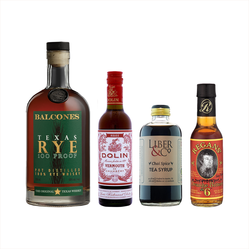 / Chai Manhattan Cocktail Set: Balcones Texas Rye + Liber Chai Spice Tea Syrup + Dolin Rouge 375 + Regans' Orange Bitters