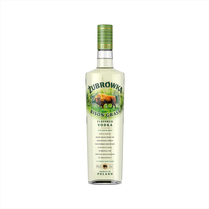 750ml bottle of Zubrowka Bison Grass Vodka.