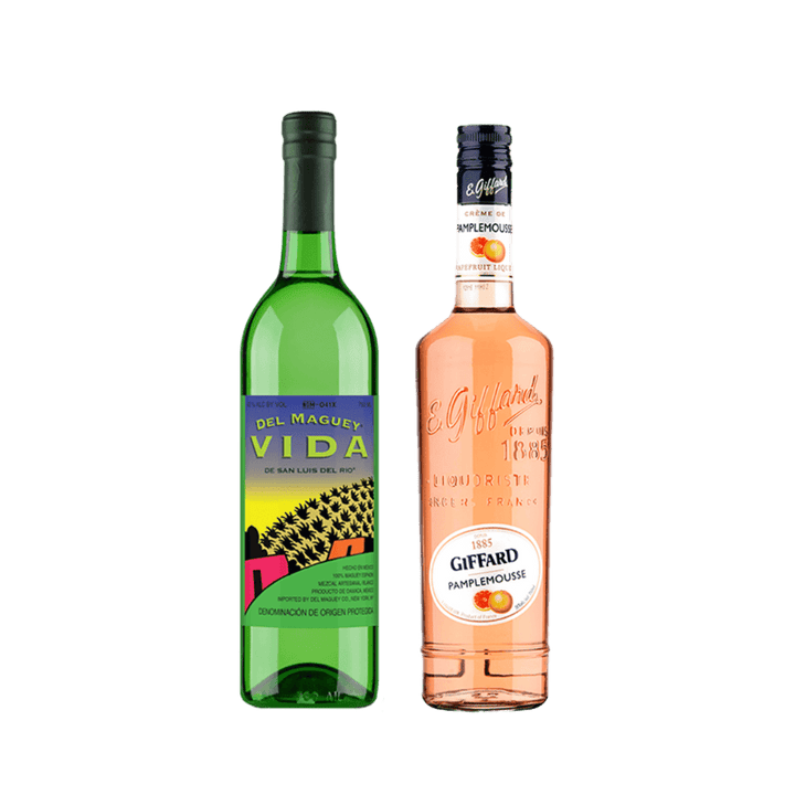 The Perfect Paloma Cocktail Set, featuring Del Maguey VIDA mezcal and Giffard Pamplemousse liqueur, offers a smoky-citrus twist on the classic tequila-based Paloma. This pairing uniquely combines the earthy, roasted agave notes of VIDA mezcal—made using traditional Zapotec methods in Oaxaca—with the bright, natural grapefruit flavors of Giffard's artisanal French liqueur, creating a sophisticated and balanced cocktail experience.