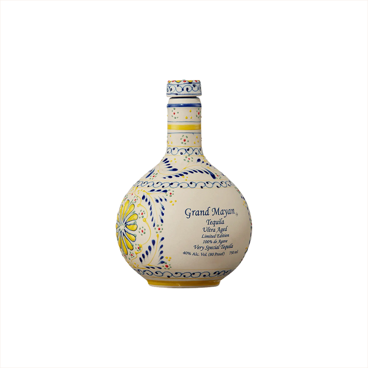 Grand Mayan Limited Edition Ultra Añejo Tequila offers cocktail enthusiasts a truly singular experience, thanks to its exceptional five-year aging process in French and American oak barrels. This ultra-premium tequila stands out for its hand-painted Talavera ceramic bottles, each a work of art that reflects Mexico's rich cultural heritage, making it as visually stunning as it is delicious in craft cocktails.