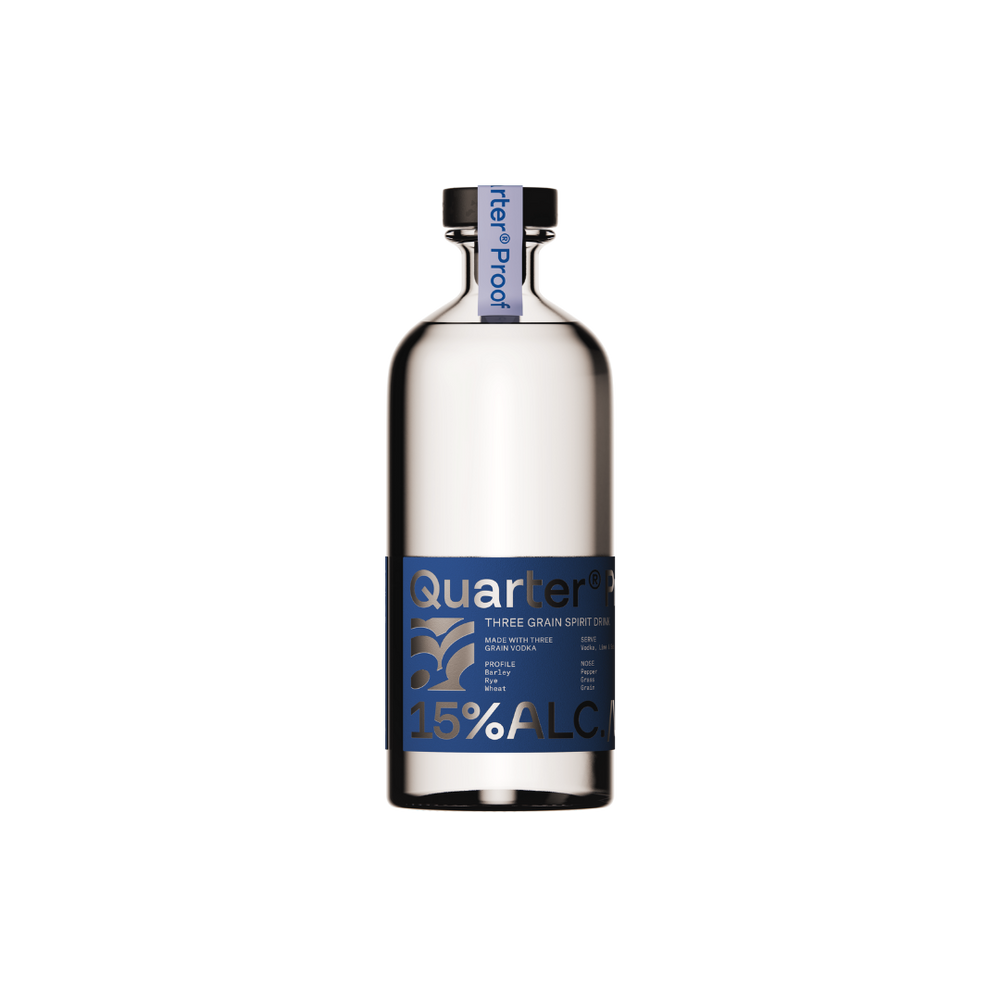 Quarter Proof Three Grain Vodka stands apart as a thoughtfully crafted 15% ABV spirit that delivers authentic vodka character without the full-strength punch, made from a distinctive British grain trio of wheat, rye, and barley that creates a balanced, warming profile perfect for enjoying classic cocktails with more nuance and less alcohol—it's the rare vodka that lets you savor a second (or third) Espresso Martini or Cosmopolitan without losing your evening.