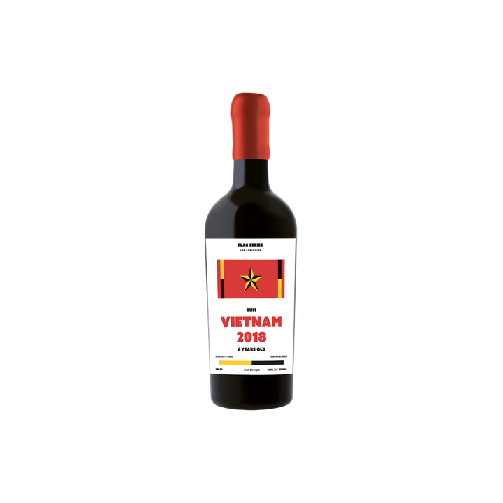 Flag Series Vietnam 2018 Rum offers cocktail drinkers a rare glimpse into Vietnamese rum-making heritage, where hand-harvested endemic sugarcane from Quang Nam province meets French Caribbean distilling traditions through a copper Armagnac column still—a unique combination that yields a vibrant, complex spirit with distinctive tropical aging character at cask strength (55.5% ABV), bottled completely natural without water, coloring, or filtration from a single ex-Cognac cask that produced just 213 bottles.