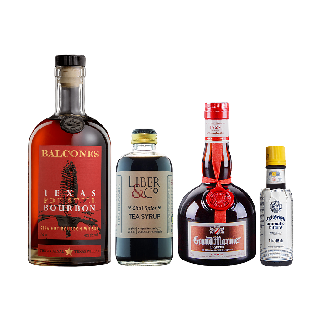 Chai How Are You? Cocktail Set: Balcones Texas Pot Still Bourbon + Grand Marnier 375oz + Liber & Co Chai Spice Tea Syrup + Angostura Bitters 4oz
