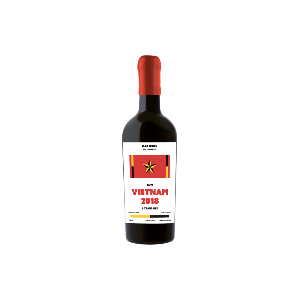 Flag Series Vietnam 2018 Rum offers cocktail drinkers a rare glimpse into Vietnamese rum-making heritage, where hand-harvested endemic sugarcane from Quang Nam province meets French Caribbean distilling traditions through a copper Armagnac column still—a unique combination that yields a vibrant, complex spirit with distinctive tropical aging character at cask strength (55.5% ABV), bottled completely natural without water, coloring, or filtration from a single ex-Cognac cask that produced just 213 bottles.