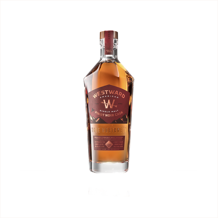 Westward American Single Malt Whiskey Pinot Noir Cask starts its journey as a craft beer, which is then distilled twice in pot stills before aging in new, lightly charred American Oak barrels. The whiskey then undergoes a unique finishing process, spending up to two years in French Oak wine casks that previously held Pinot Noir from Oregon's Willamette Valley, imparting subtle fruity notes and a soft, rosy hue to the final product.