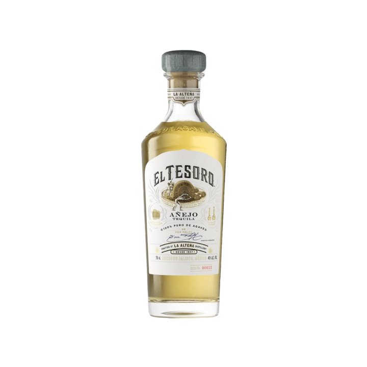 El Tesoro Añejo Tequila stands out for its traditional production methods, including the use of a tahona wheel to crush agave and copper pot stills for distillation, resulting in a rich, complex flavor profile that showcases both the agave's character and the influence of American oak aging. Unlike many other añejo tequilas that can become overly dominated by wood notes, El Tesoro's 2-3 year aging process strikes a delicate balance, allowing the spirit to develop depth while still maintaining the vibrant essence of its blue agave roots.