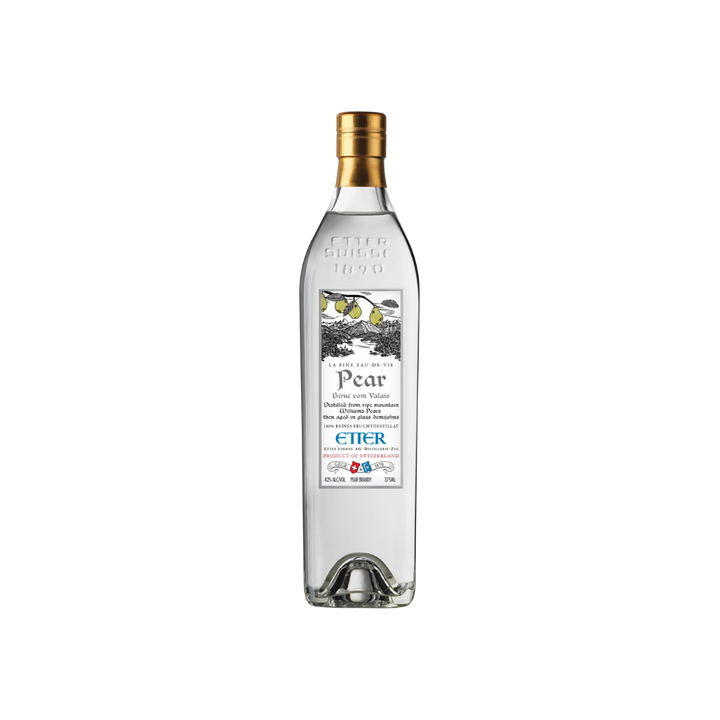 Etter Pear Williams Eau-de-Vie captures the essence of over 10 pounds of fresh Swiss pears in every bottle, distilled by a family that's been perfecting the craft since 1870 and aged in glass demijohns to preserve pristine fruit character—making it equally stellar sipped neat, lengthened with soda as a refreshing aperitif, or lending sophisticated orchard notes to elevated cocktails like a Pear Rickey or Sgroppino.