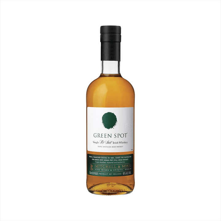Green Spot Irish Whiskey stands out as a rare gem in the world of Irish whiskeys, being one of only two remaining bonded Irish whiskeys still in production today. This single pot still whiskey, crafted from a blend of malted and unmalted barley, offers a distinctively creamy mouthfeel and complex flavor profile that sets it apart from both rums and other whiskeys, making it an excellent choice for sipping neat or as a sophisticated base for cocktails.
